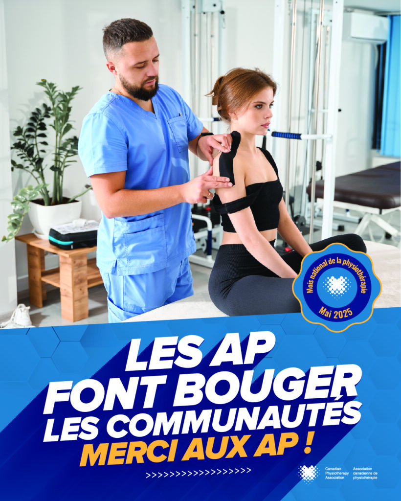 Tout au long du mois de mai, l’ACP mettra en évidence le Mois national de la physiothérapie en partageant les témoignages inspirants de professionnels de la physiothérapie, ainsi que des réalisations remarquables à l’occasion de la Journée des assistants-physiothérapeutes (le 13 mai 2025), la Journée des technologues en physiothérapie / T. Phys (le 15 mai 2025) et la Journée des bénévoles (le 21 mai 2025).