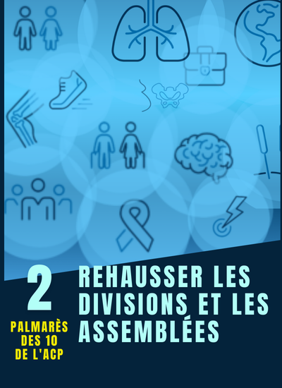 Au cours des trois dernières années, nous avons travaillé en partenariat avec nos divisions et nos assemblées sur un plan transformateur pour les outiller en tant qu’experts de l’ACP et leaders de confiance en matière de plaidoyer, de perfectionnement professionnel et d’engagement des membres, nous assurant que les membres ont accès aux meilleures données, formations et expertises dans la profession.