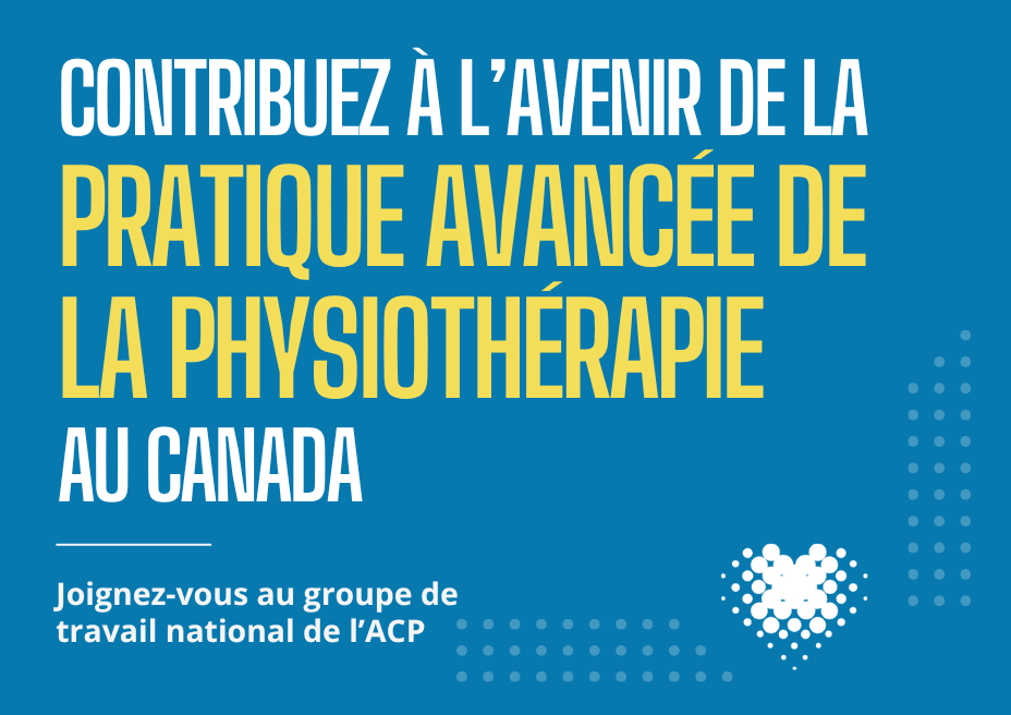 APPEL À L’ACTION : Soumettez votre candidature pour faire partie du groupe de travail sur la pratique avancée de la physiothérapie de l’ACP !