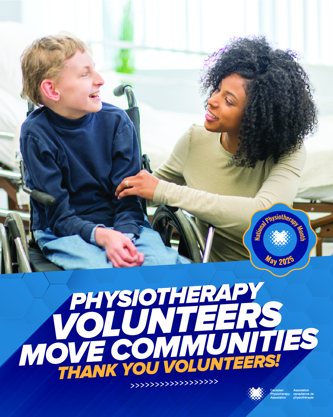 Throughout the month of May, the CPA will spotlight the profession through a series of diverse testimonials and special celebrations, including PTA Day (May 13, 2025), Physiotherapy Technologist (Technologue en physiothérapie/T. Phys.) Day (May 15, 2025), and Volunteer Day (May 21, 2025).